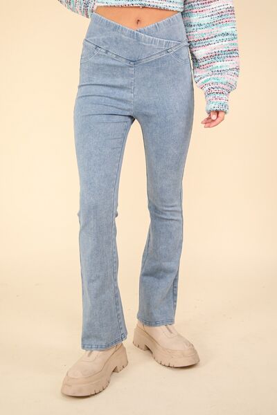 VERY J Washed Denim Stretchy Crossover Waist Leggings