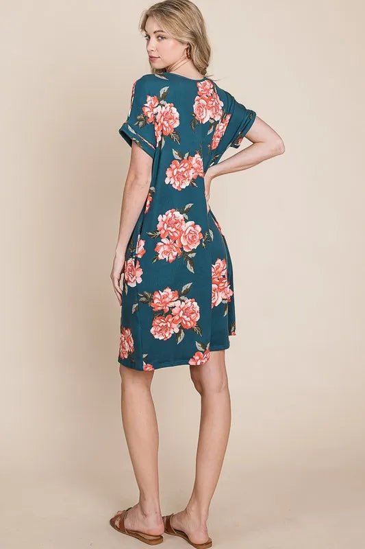 The Floral Round Neck Short Tee Dress with Pockets is a casual and comfortable piece perfect for everyday wear. The round neckline offers a classic and easy-to-wear style. The floral print adds a touch of charm and femininity to the dress. With the addition of pockets, this tee dress combines style with functionality, providing a practical element for carrying small essentials. Perfect for a relaxed and effortless look, this dress is a great choice for running errands or enjoying a casual day out.