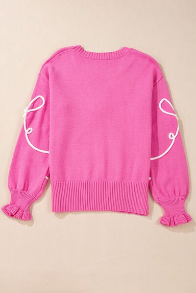 Bow Round Neck Dropped Shoulder Sweater