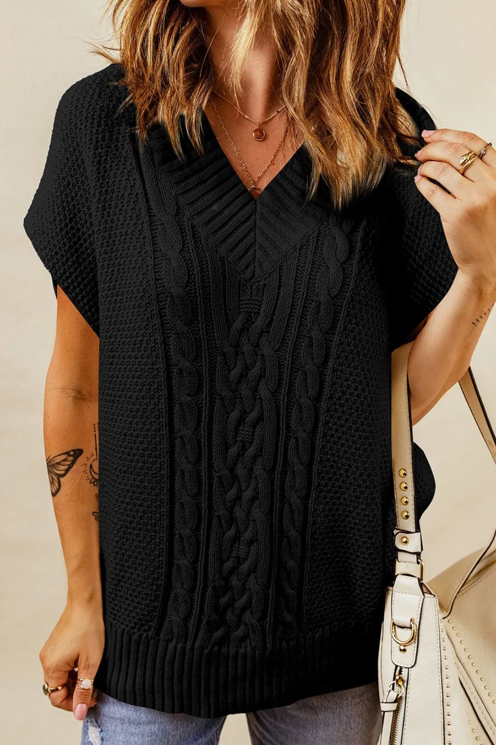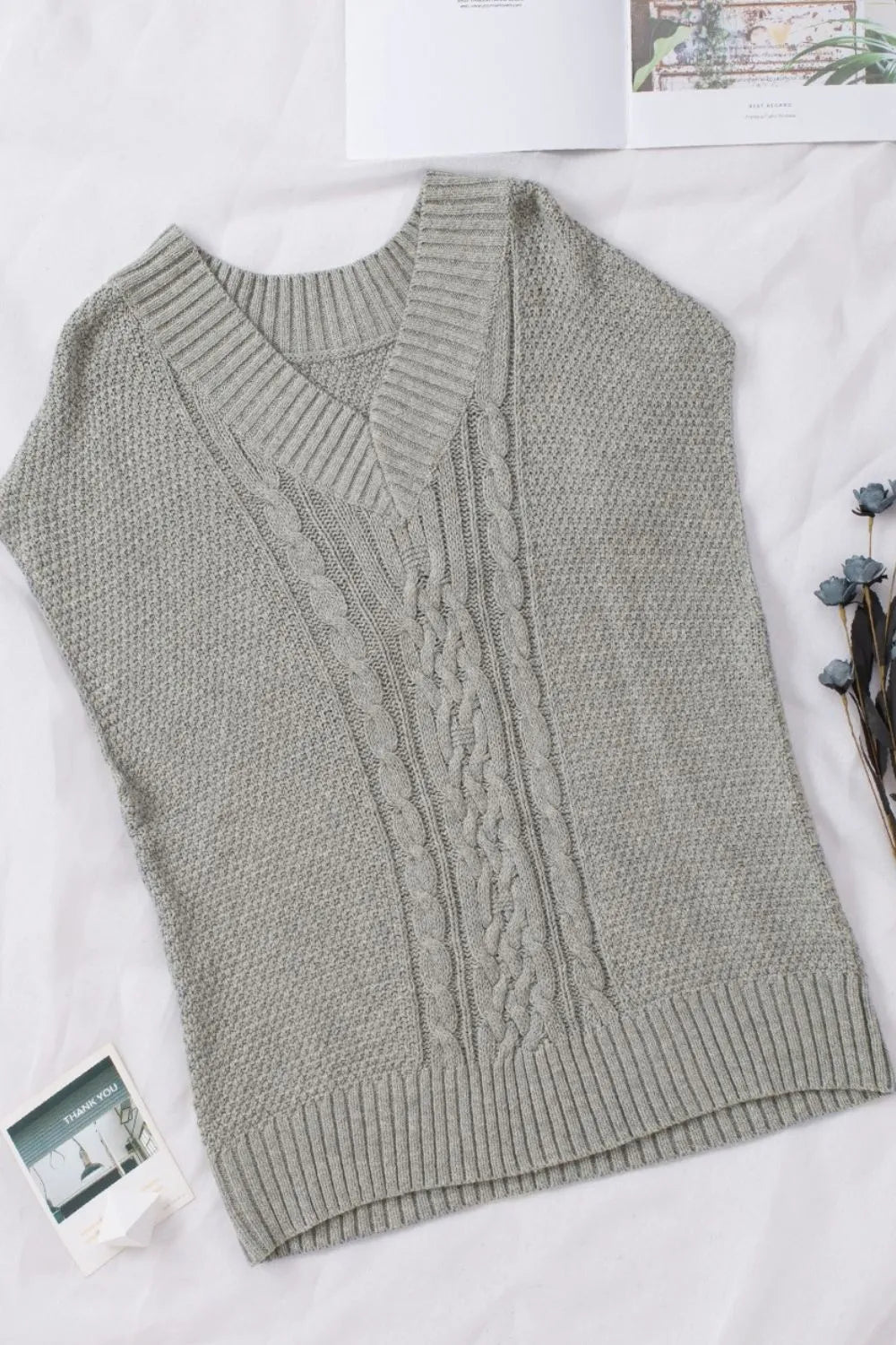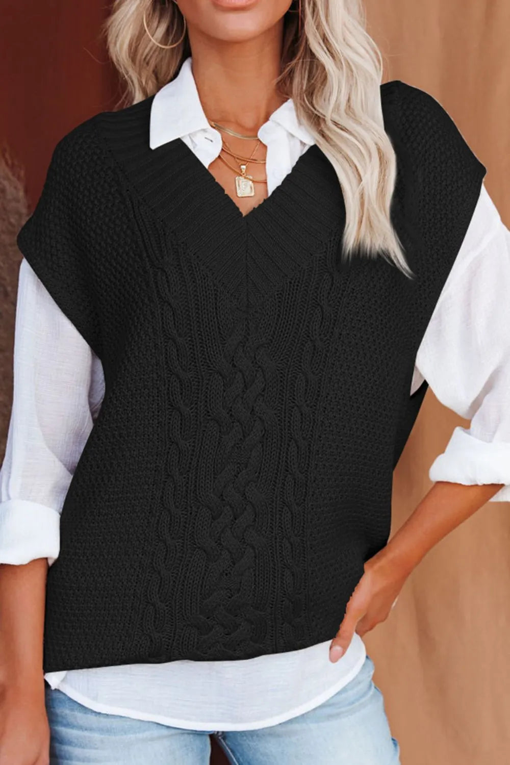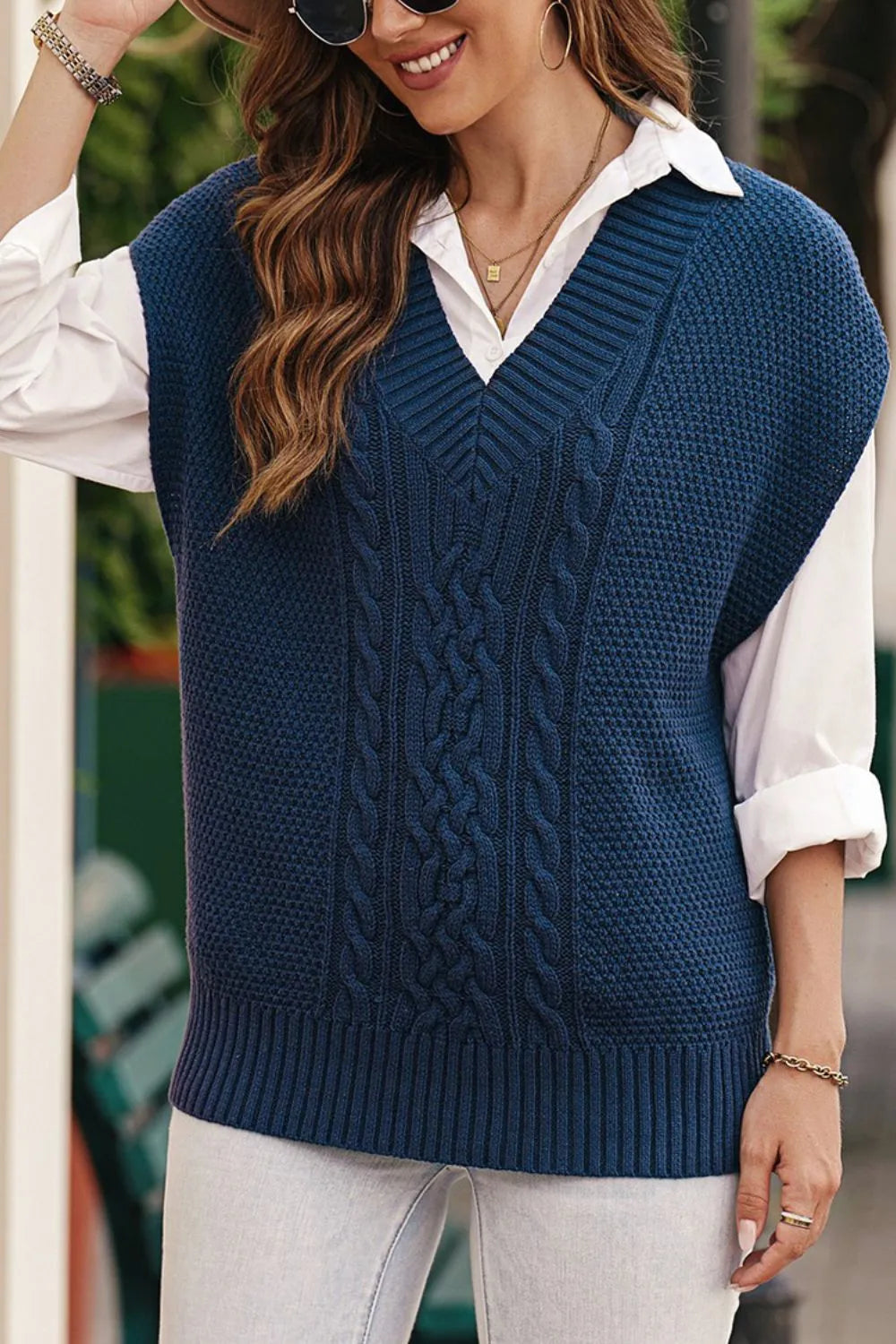 Cable-Knit V-Neck Sweater Vest