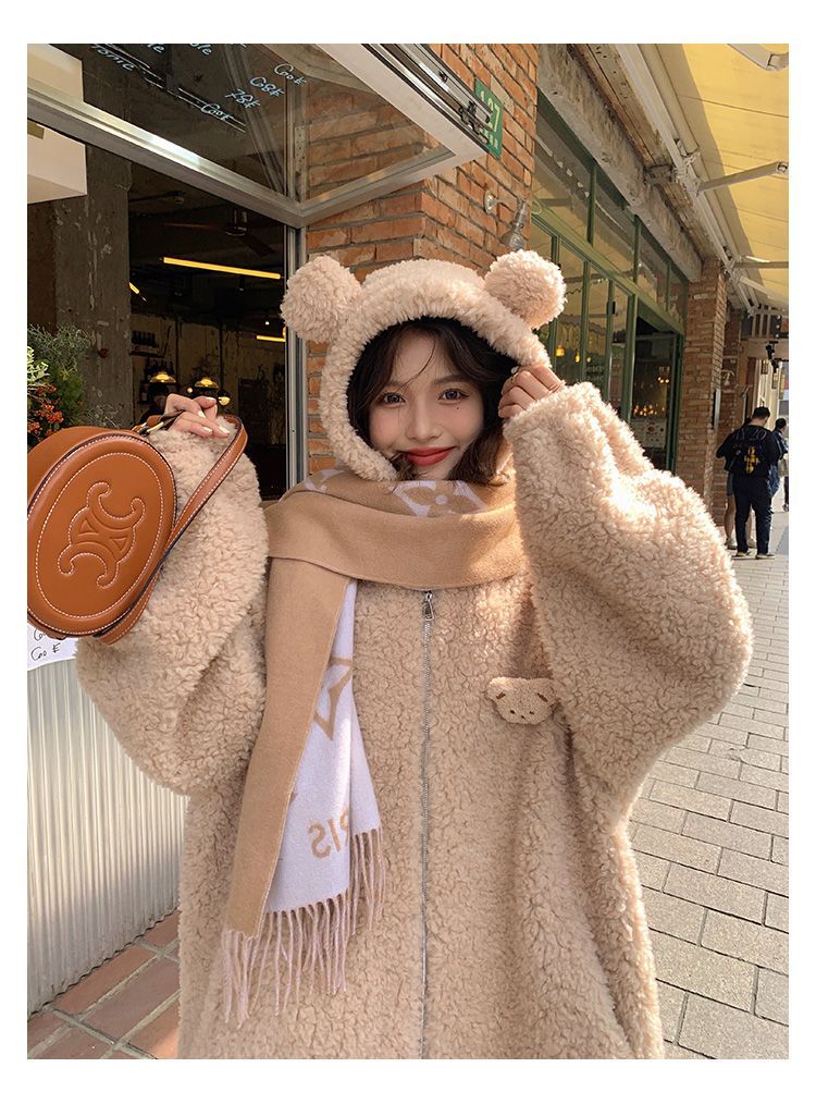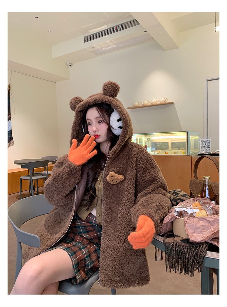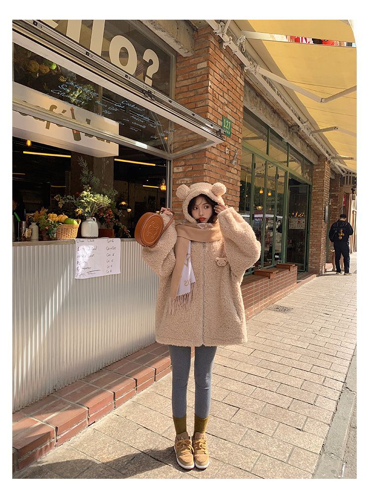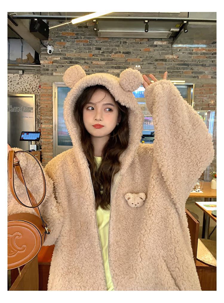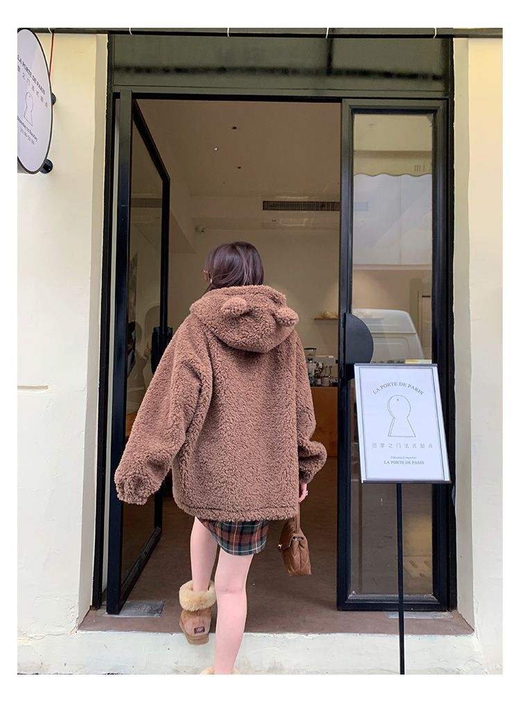 Lamb Wool Zipper Coat For Women