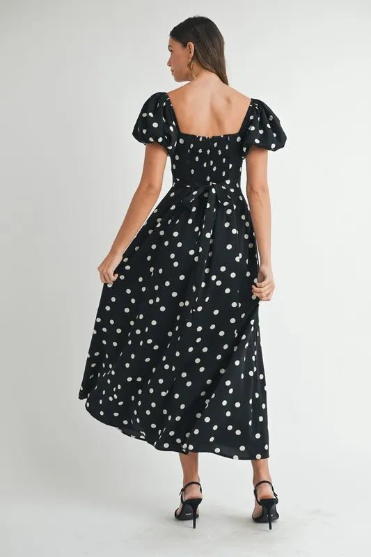 MABLE Polka Dot Puff Sleeve Midi Dress
