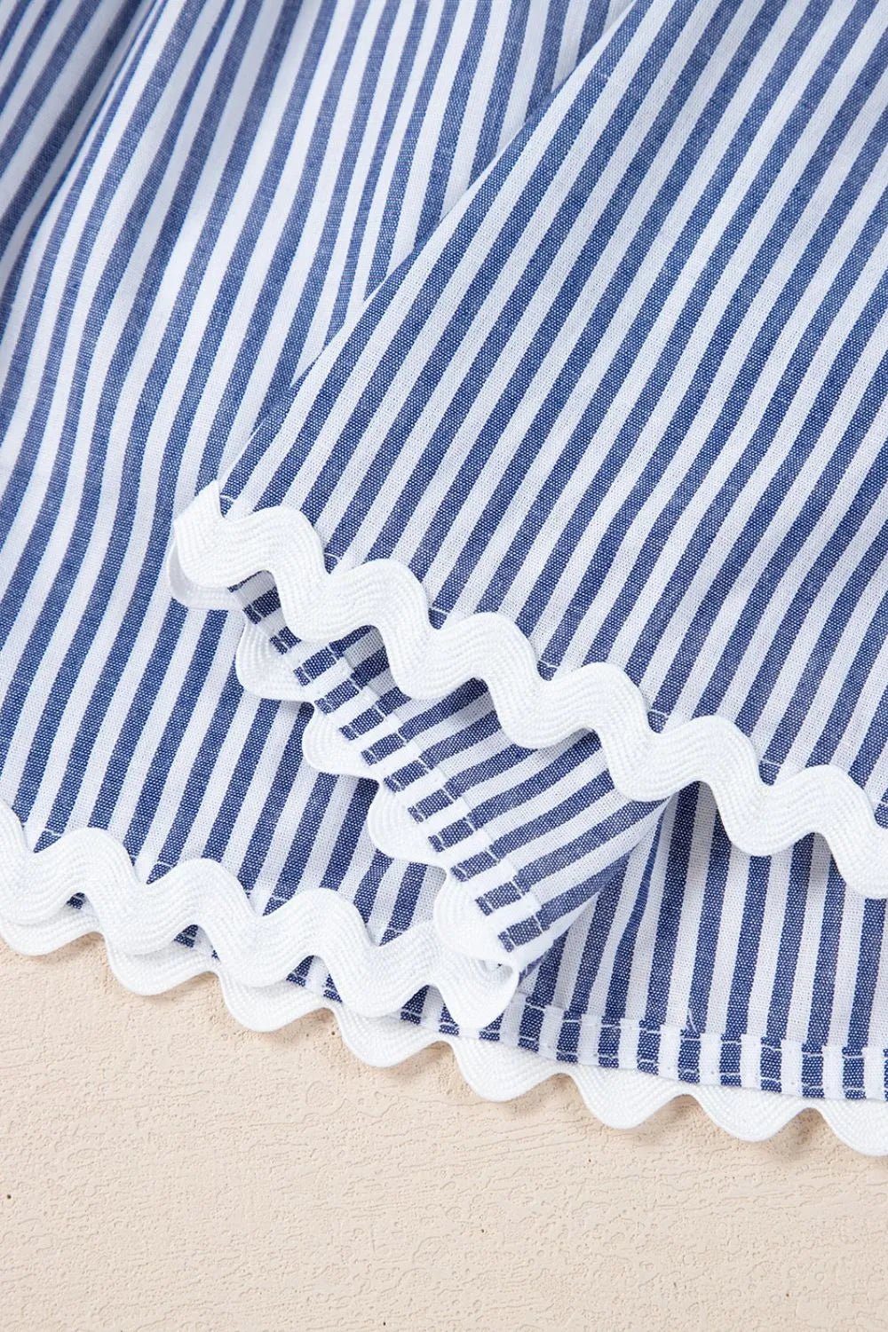 Stripe Sleeveless Notched Ric Rac Mini Dress