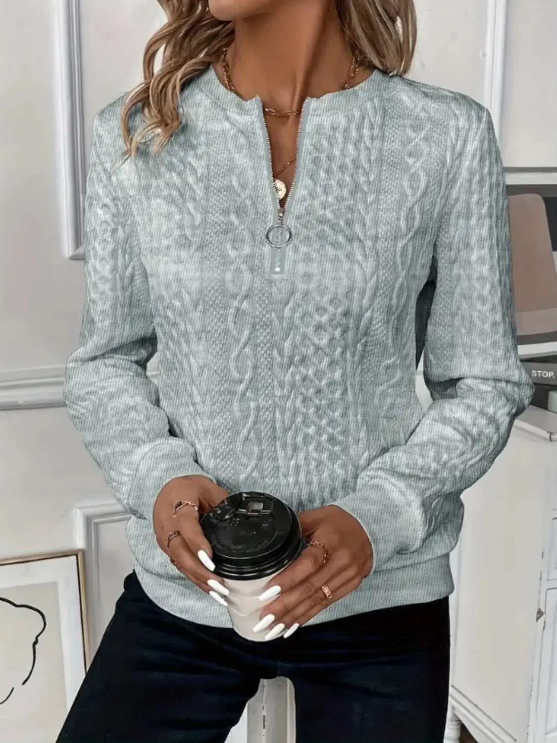 Texture Half Zip Long Sleeve Sweatshirt