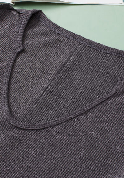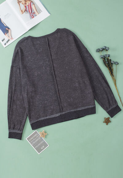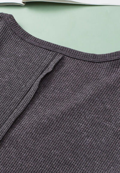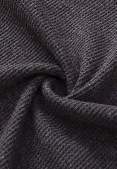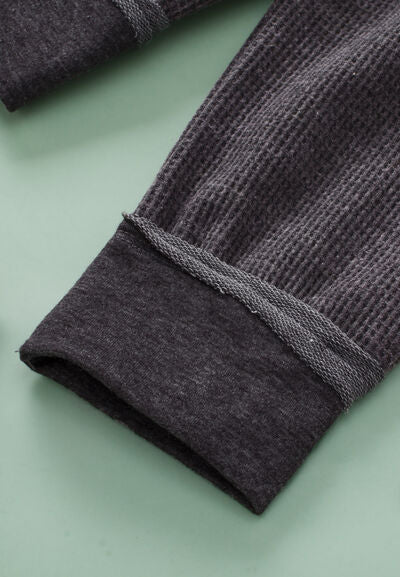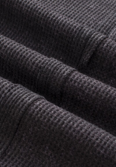 Waffle-Knit Notched Long Sleeve Sweatshirt